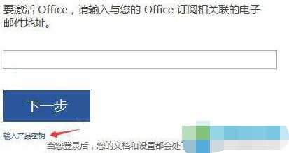2、然后在弹出的输入您的产品密钥窗口中输入我们上面贴出的Office2019密钥,点击安装按钮进行激活即可,如图:
